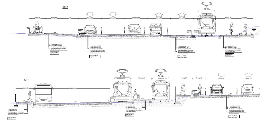 Die Nebenfahrbahn soll künftig für den Radverkehr attraktiver sein, eine Durchfahrt für den motorisierten Individualverkehr parallel zur Hauptfahrbahn ist nicht mehr vorgesehen. Zudem wird die Zahl der Parkstände massiv reduziert, um zusätzliche Grünflächen zu schaffen.